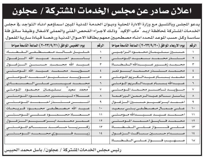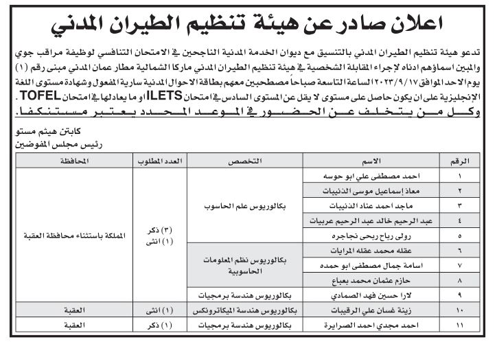 إنجاز-دعت بلديات ومؤسسات حكومية رسمية، اليوم الثلاثاء، بالتنسيق مع ديوان الخدمة المدنية، عدداً من المرشحين لاستكمال إجراءات التعيين .