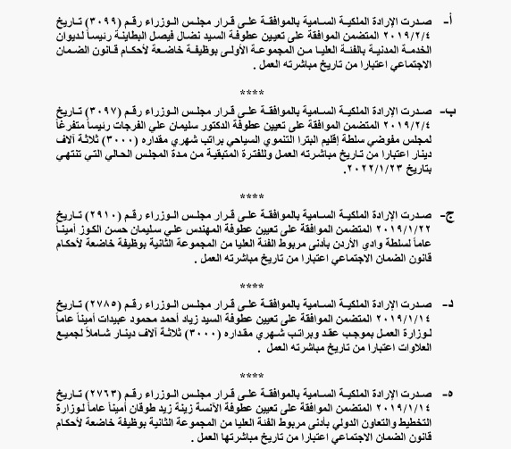 صدرت الإرادة الملكية السامية بالموافقة على تعيين خمسة أمناء عامين بتنسيب من مجلس الوزراء.