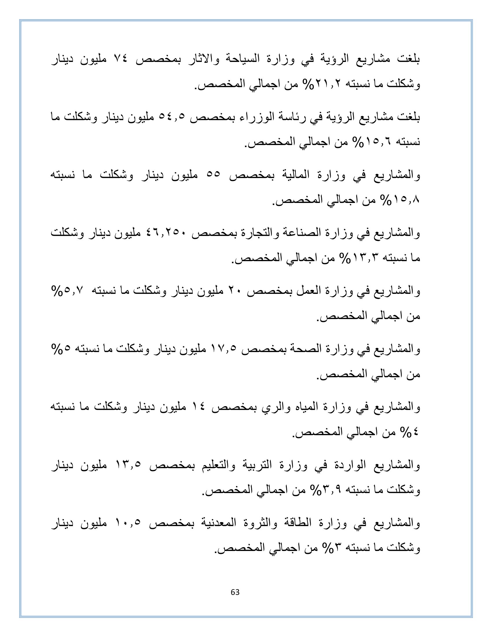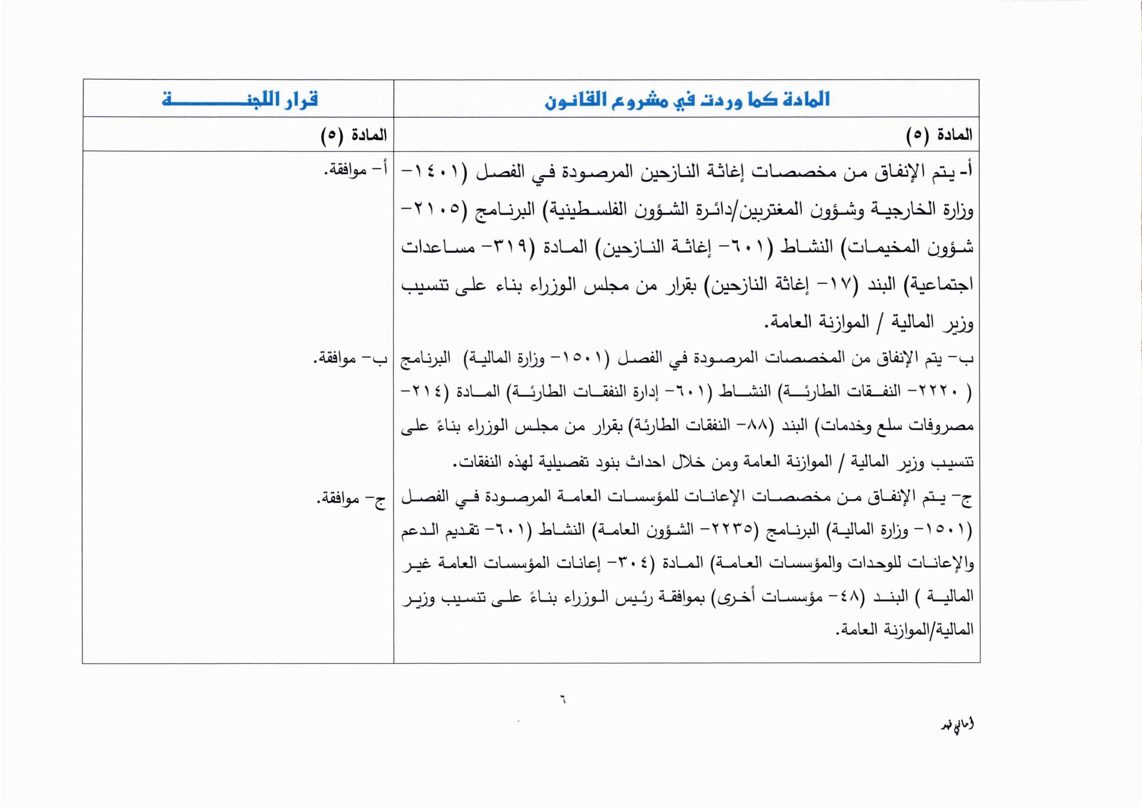 وطالبت المالية في توصياتها التي وصلت إلى 34 بندا، بتوجيه الدعم للطالب الفقير وتخصيص 60 مليونا لصندوق الإقراض الزراعي لمنح قروض دون فائدة للمزارعين، بالإضافة إلى إعادة النظر بكافة تعاقدات توليد الطاقة.