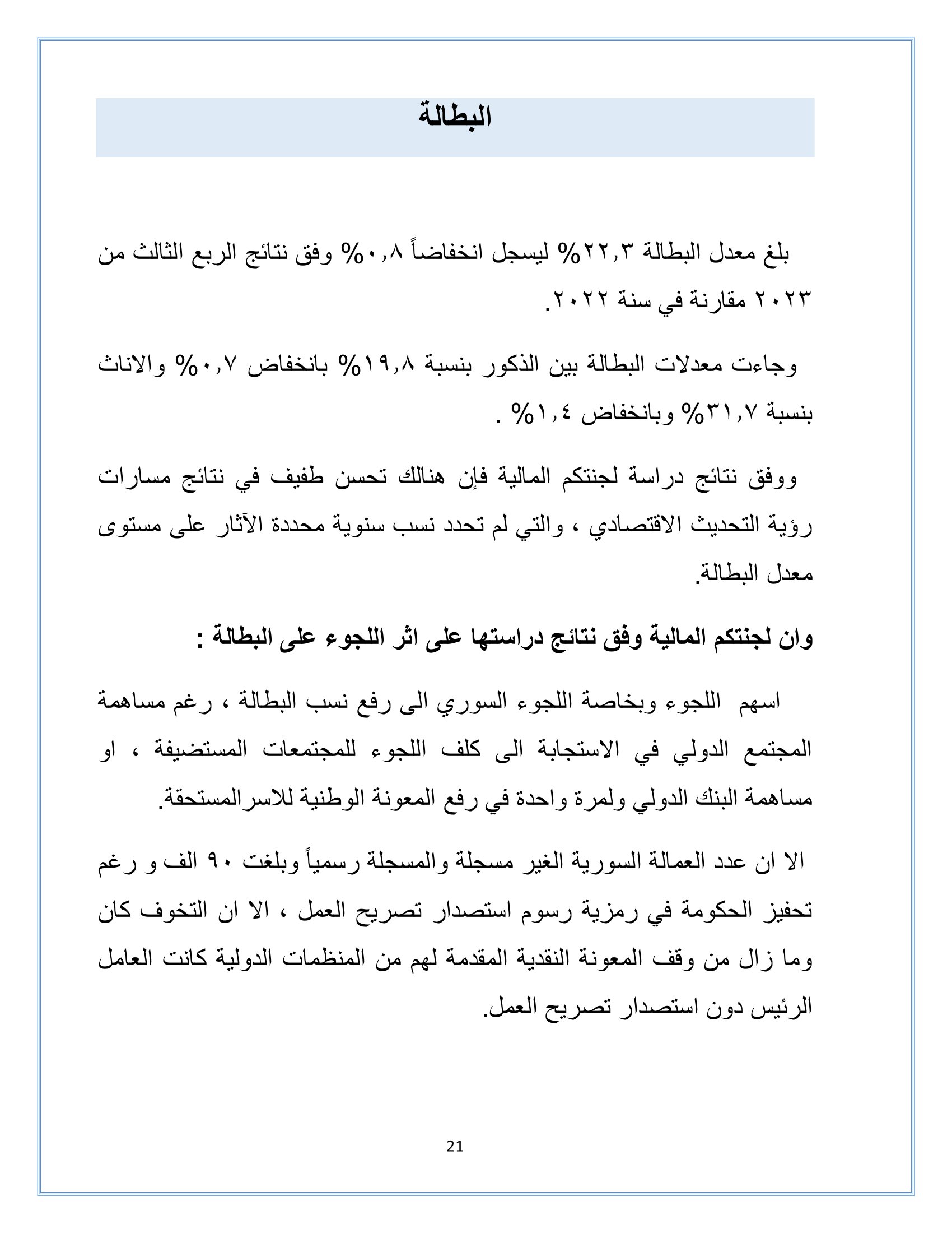 إنجاز-تنشر وكالة إنجاز الاخبارية تقرير اللجنة المالية بشأن الموازنة العامة للسنة المالية 2024، وتوصياتها للحكومة.