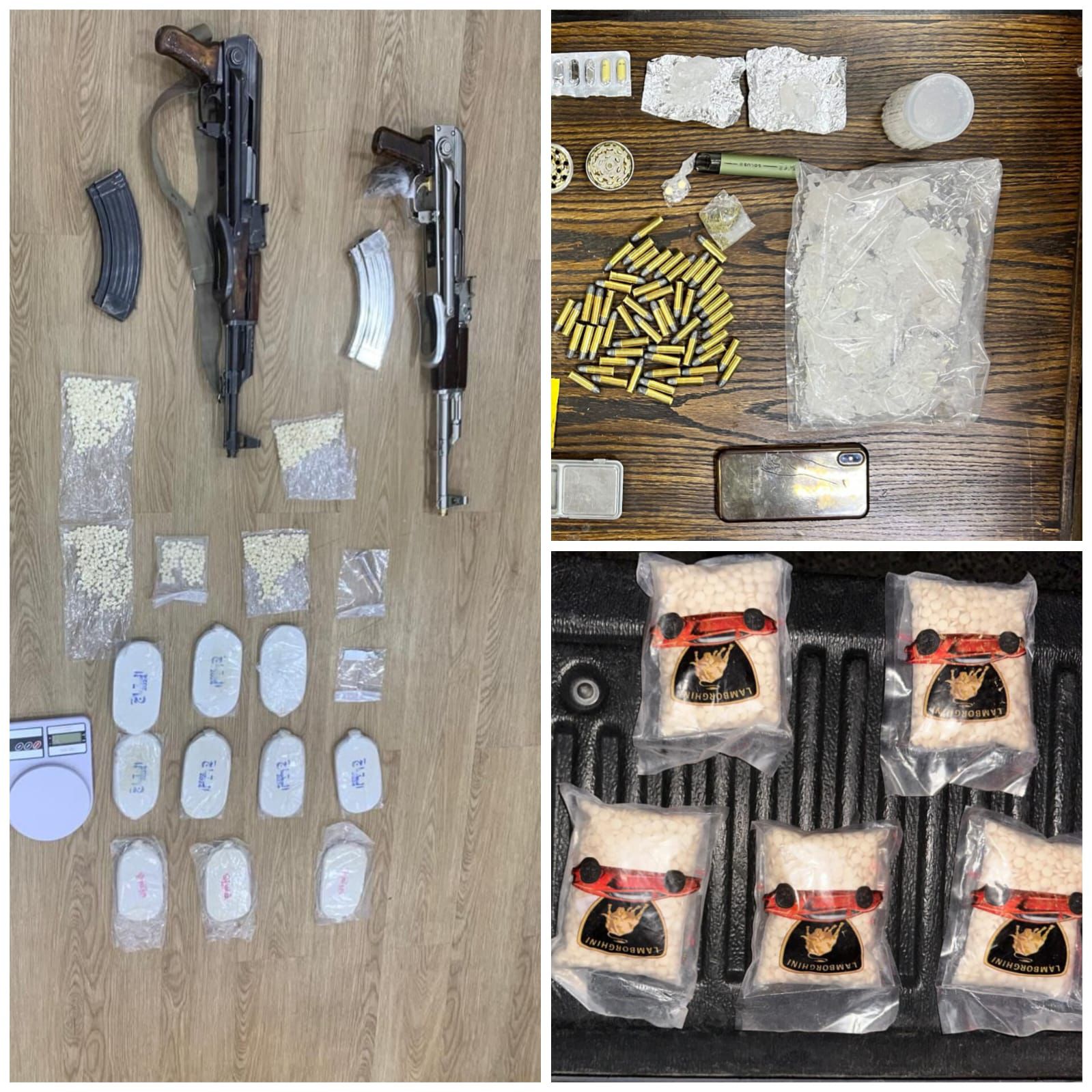 كما وأُلقي القبض في لواء الرمثا كذلك على شخصين بحوزتهما نصف كغم من مادة الكريستال المخدرة ، فيما جرى في جنوب العاصمة مداهمة مروجين خطرين للمخدرات أُلقي القبض عليهما وضبط بحوزتهما كمّيات من المواد المخدرة والذخيرة الحية .