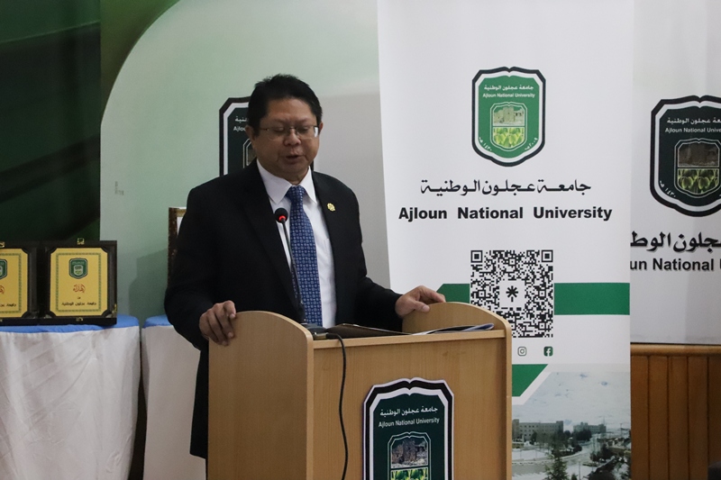 واكد على ان هذا المؤتمر يعد مثالًا ساطعًا على ما يمكن أن يحققه التعاون المثمر يمثل المؤتمر الدولي الثاني بين سفارة ماليزيا في الأردن وهيئة التعليم الماليزية الأردنية ورابطة الجامعات الماليزية في الأردن وجامعة عجلون الوطنية بحيث تُجسد هذه الشراكة كيف يمكن للدبلوماسية والتعليم والأوساط الأكاديمية أن تعمل جنباً إلى جنب لخلق منصات للحوار والبحث والابتكار.