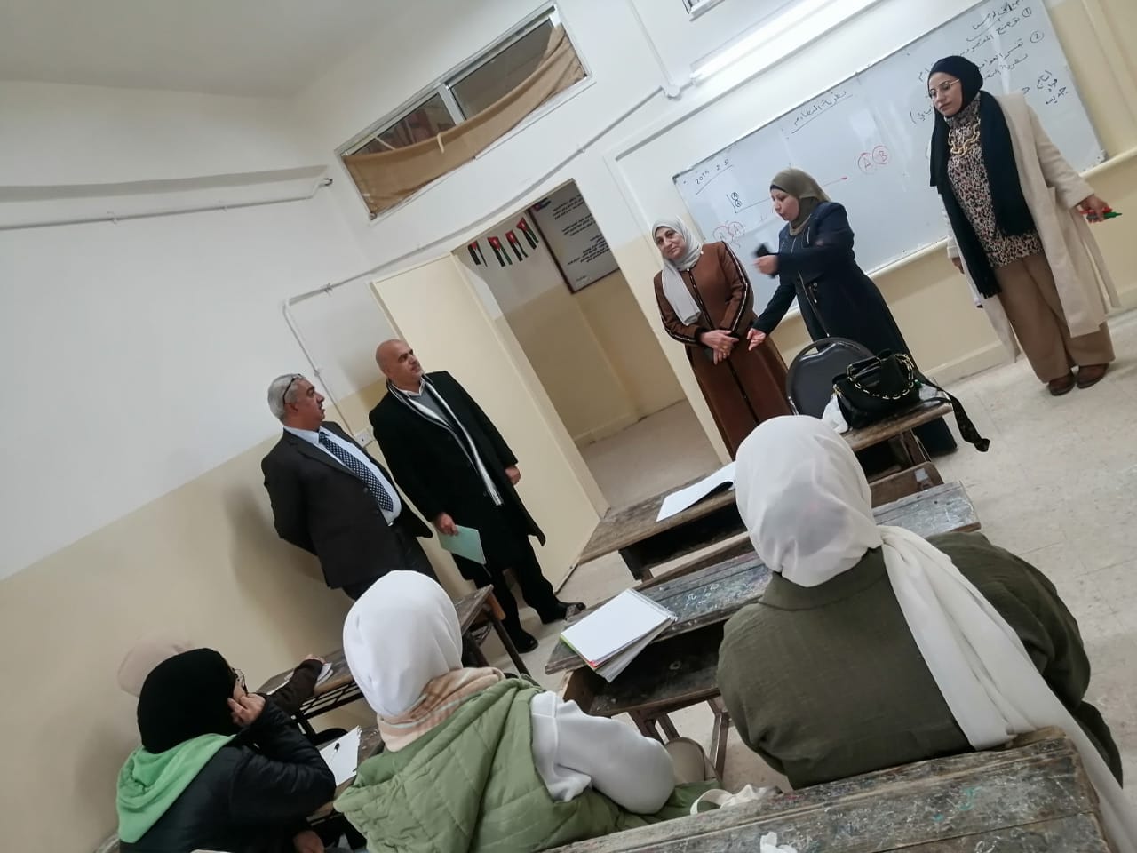 وتابع جويعد سير العملية التعليمية ومدى الالتزام بالدوام المدرسي مؤكدا على متابعة تسجيل الحضور والغياب ورصده يوميا على المنصة الإلكترونية المعتمدة وتطبيق أسس النجاح والرسوب مشيرا إلى ضرورة العمل على توعية الطالبات وأولياء الأمور بأهمية الالتزام بالدوام المدرسي.