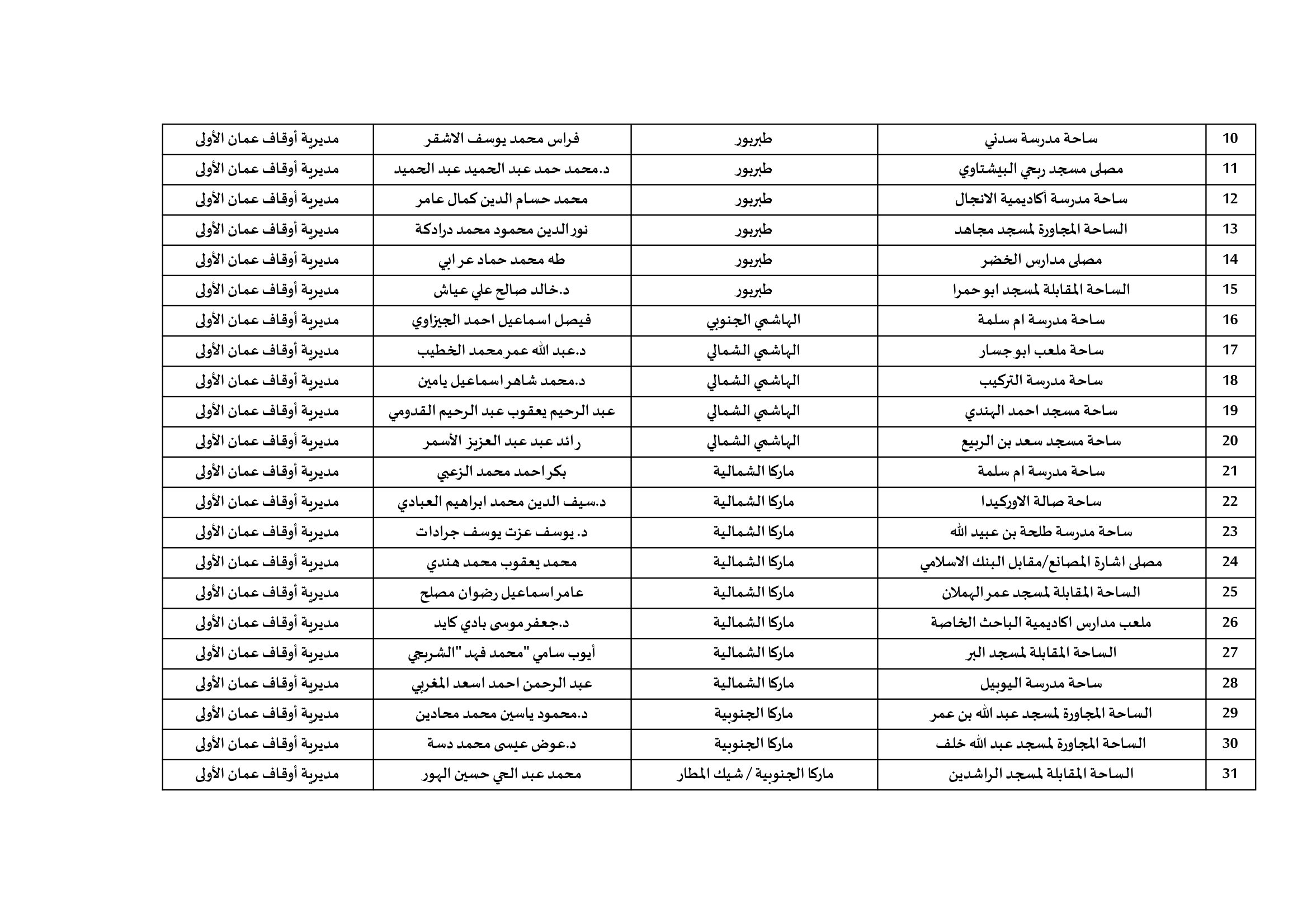 وبحسب الوزارة فإن المصلى الرئيس سيقام في العاصمة داخل مدينة الحسين للشباب الساحة الخلفية بوابة رقم 3، كما ستقام صلاة العيد في المساجد الرئيسية وهي، مسجد الشهيد الملك المؤسس عبدالله الأول منطقة العبدلي، والمسجد الحسيني الكبير بمنطقة وسط البلد، ومسجد الجامعة الأردنية، ومسجد أبو درويش في الأشرفية.