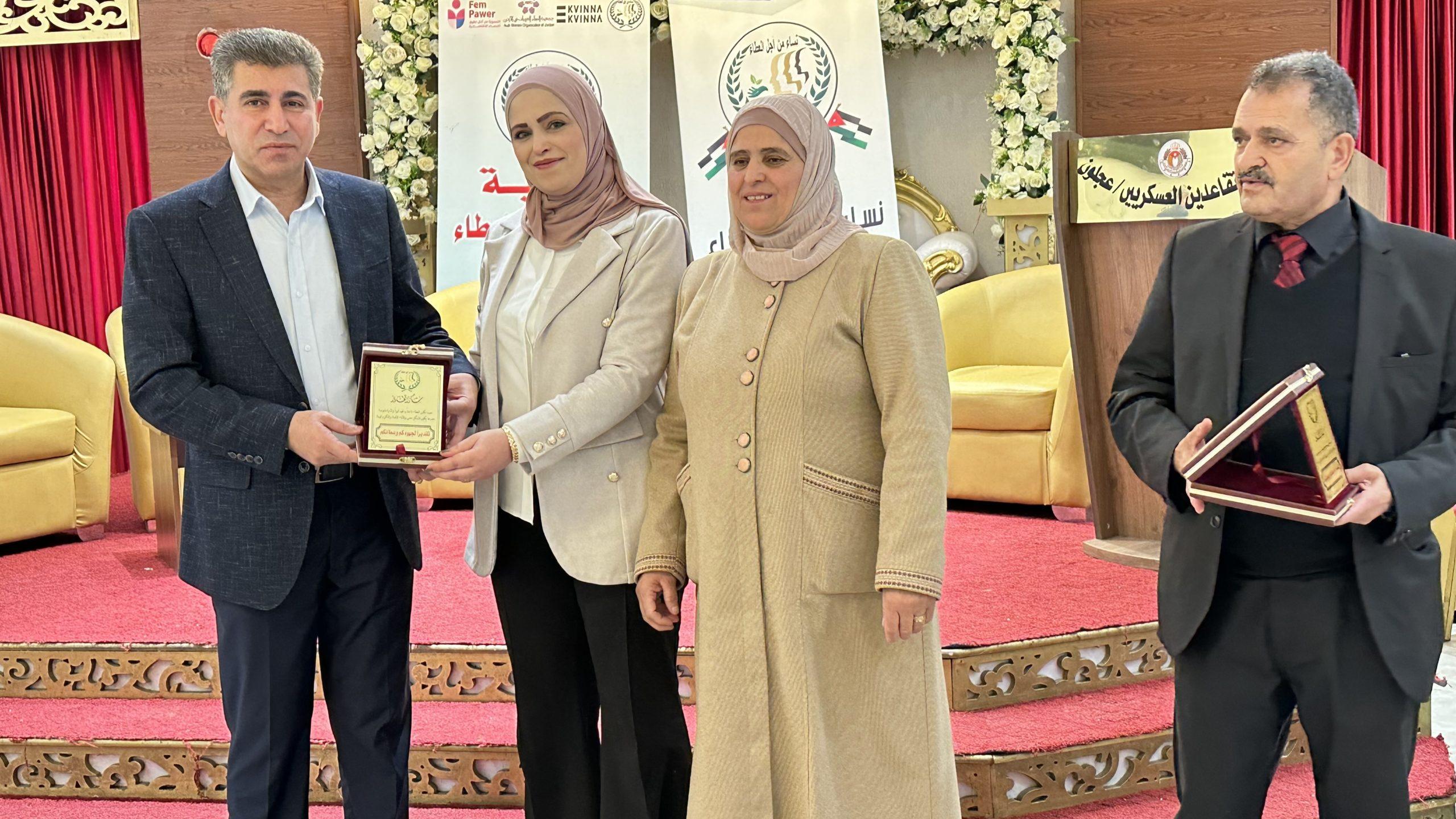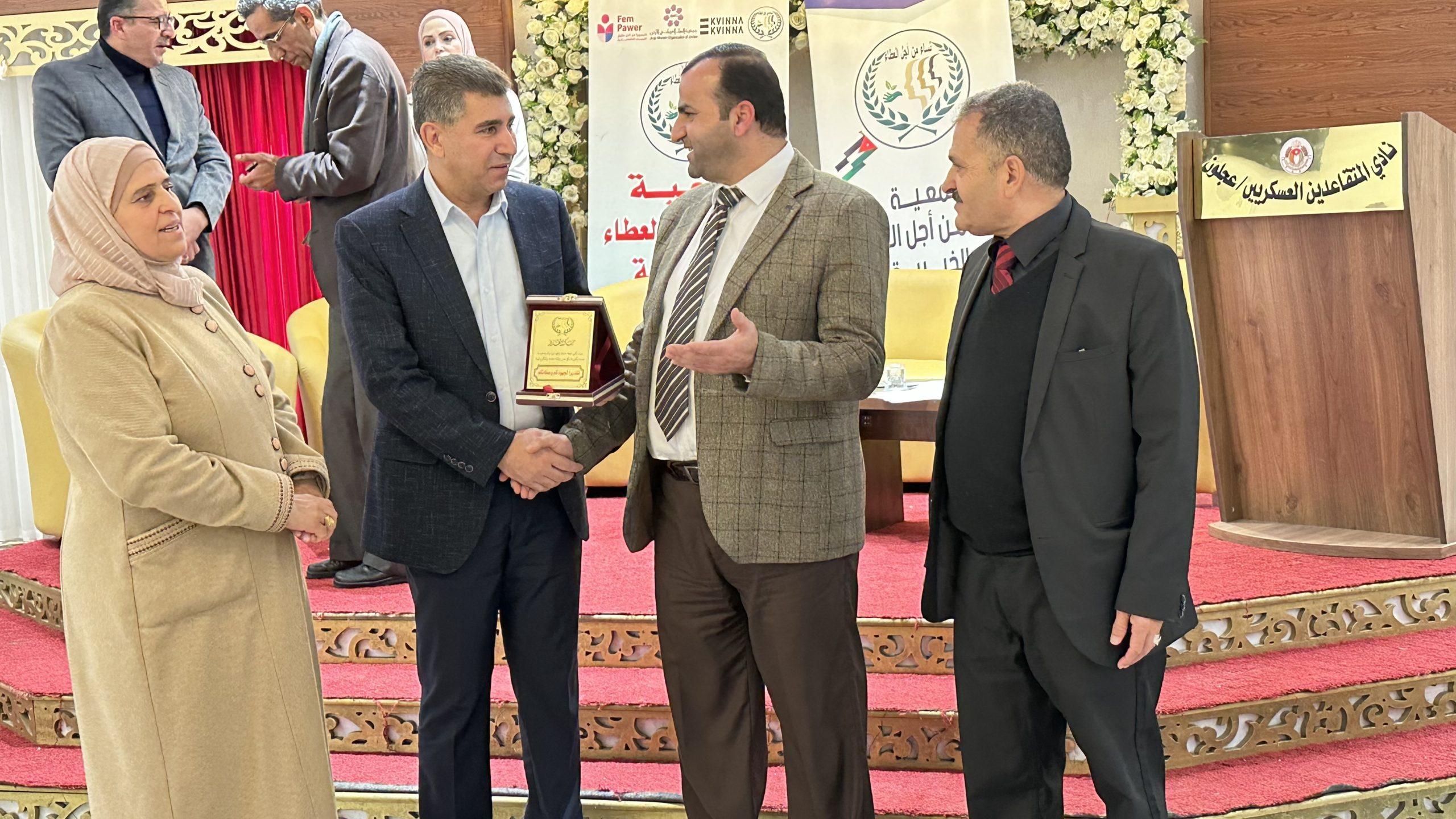 اختتمت اليوم في قاعة نادي المتقاعدين العسكريين في محافظة عجلون فعاليات مشروع كسب تأييد الصحفيين للوقوف ضد العنف الاقتصادي المبني على النوع الاجتماعي والذي نفذته جمعية نساء من اجل العطاء الخيرية ضمن برنامج FemPower الإقليمي للحقوق الاقتصادية للمرأة بقيادة منظمة المرأة للمرأة السويدية وبدعم من وزارة الخارجية الهولندية، وبإشراف جمعية النساء العربيات في الأردن.