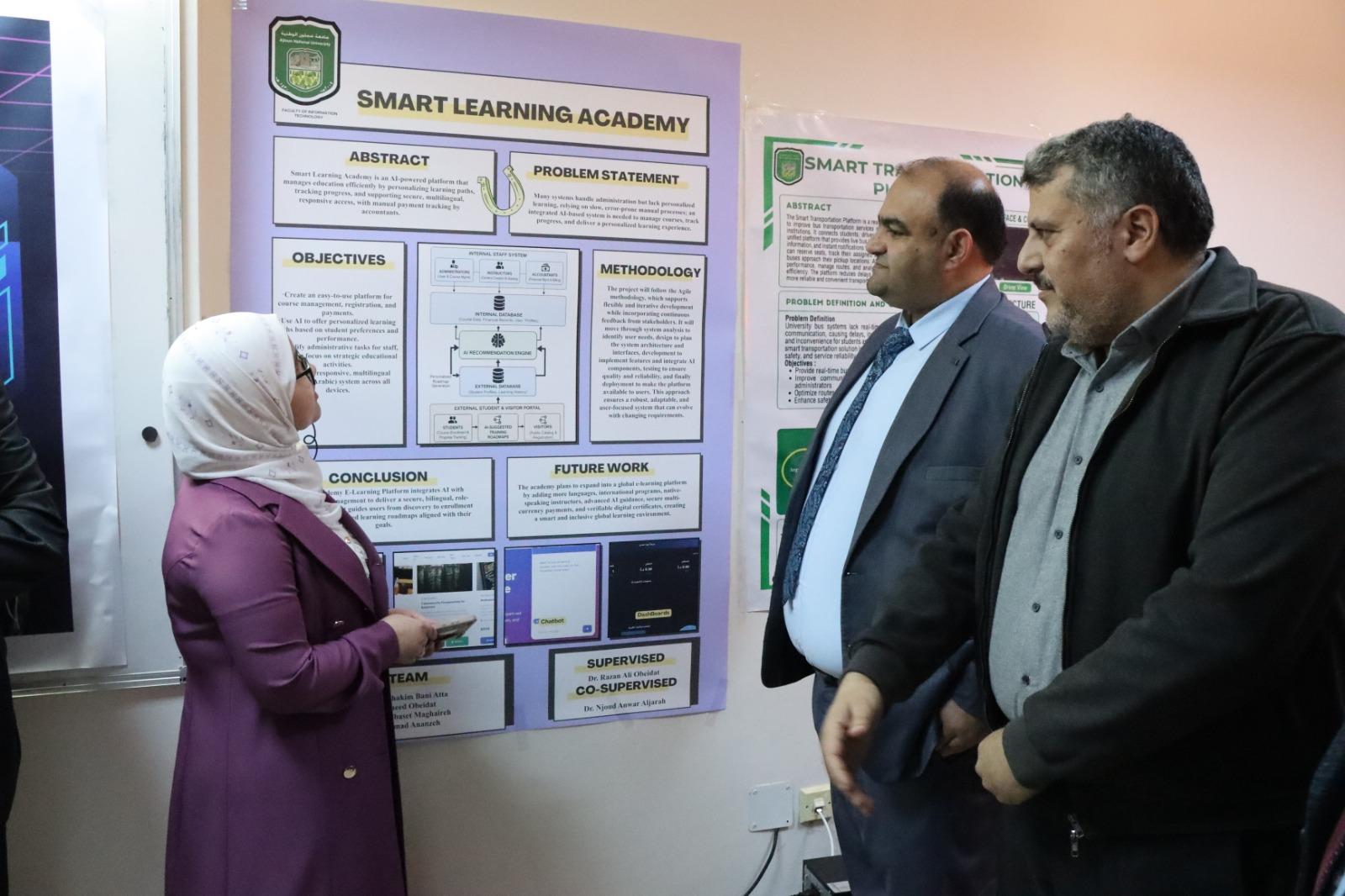 واطّلع رئيس وأعضاء اللجنة برئاسة الدكتور مؤيد علاونة خلال الزيارة على البرامج الأكاديمية التي تقدمها الجامعة خصوصًا في كلية تكنولوجيا المعلومات ومستوى دمج التكنولوجيا الحديثة في العملية التعليمية إضافة إلى مشاريع التخرج التي نفذها الطلبة والتي تعكس مهاراتهم التطبيقية وقدرتهم على الابتكار والإبداع.