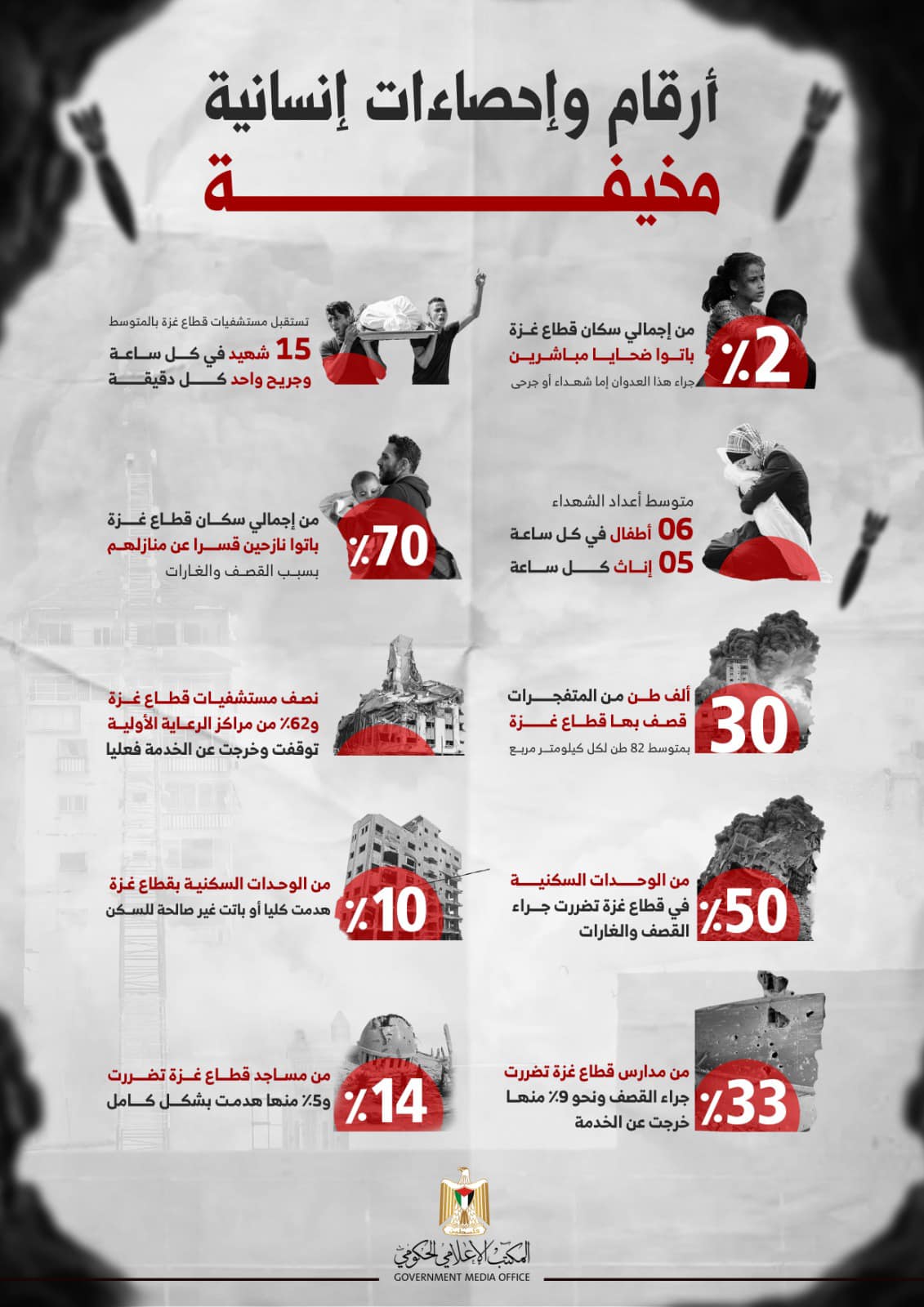 وقال رئيس المكتب الإعلامي الحكومي سلامة معروف: “منذ بدء العدوان ارتقى 10328 شهيداً، من بينهم 4237 طفلاً و2719 امرأة وفتاة و631 مسناً، وتسجيل بلاغات عن أكثر من 3 آلاف مفقود وإصابة 26 ألف مواطن”.